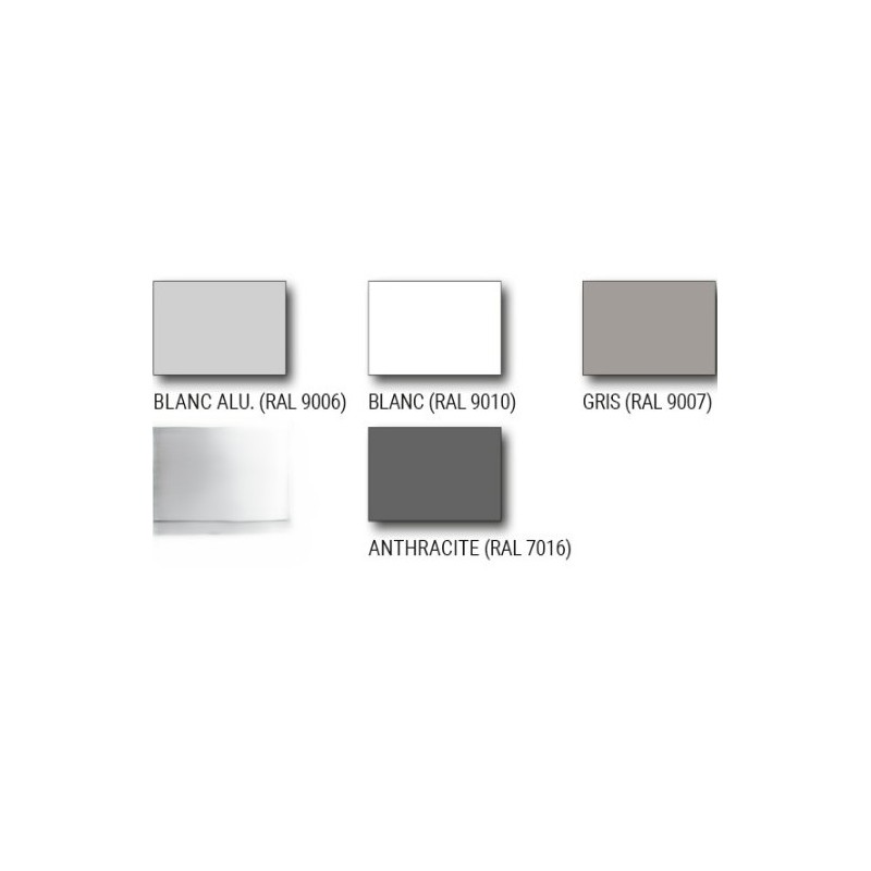 Strukturiertes Aluminiumweiß (RAL 9006), strukturiertes Weiß (RAL 9010), strukturiertes Anthrazitgrau (RAL 7016), strukturiertes Aluminiumgrau (RAL 9007).