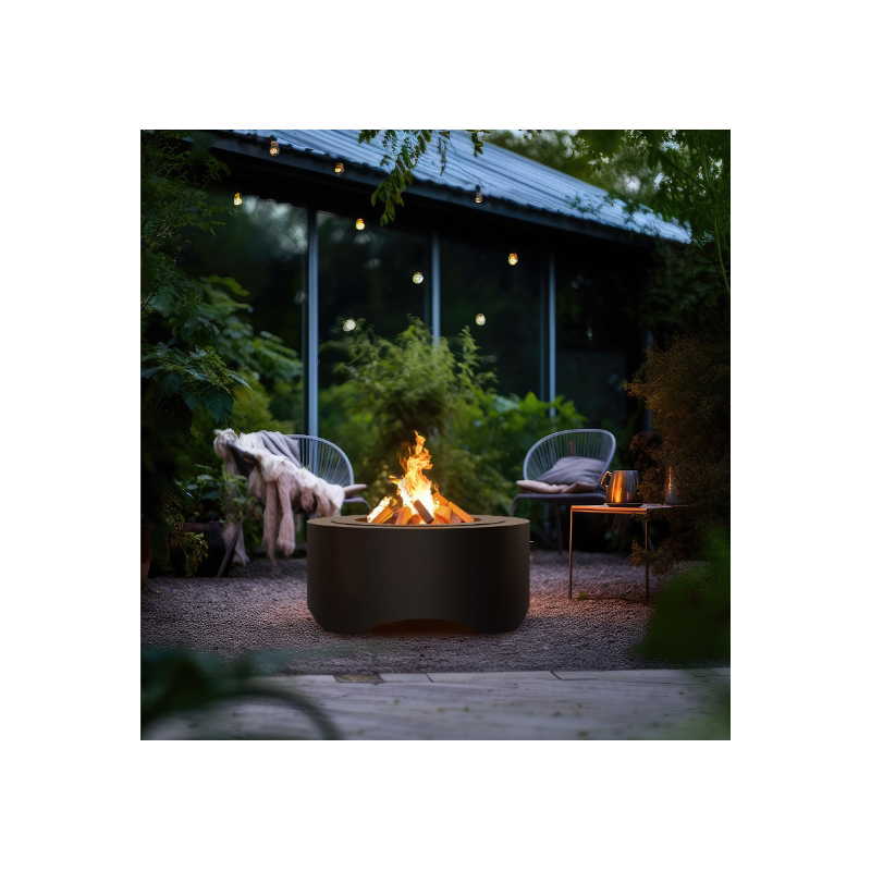 - Schwarze Feuerschale aus rundem Stahl 70cm