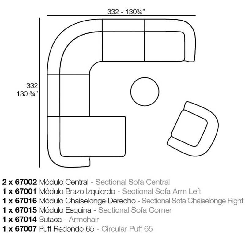 Material: Polyurethanschaum. Glad Stoff aus weichem Polypropylen. Struktur Stahl mit Kataphorese und Aluminium Füße behandelt.