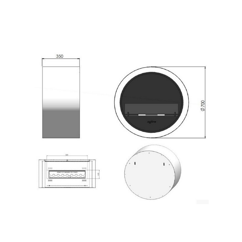 Der Bioethanol-Kamin Incyrcle 700, kanallos mit 1 Glasscheibe, kann an der Wand aufgehängt installiert werden.