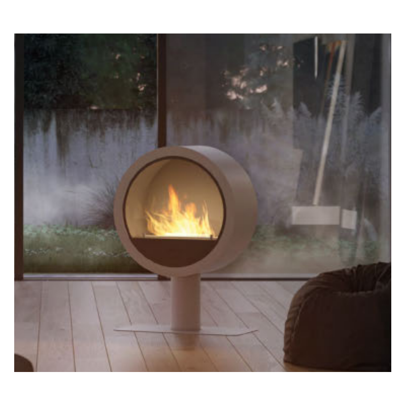 Der Kamin sorgt für einen außergewöhnlichen optischen Effekt, der dank seiner runden Form mit seinem Wandaufhängesystem in jedem Interieur installiert werden kann. Der an der Wand montierte Kamin lässt sich bei einem Wohnungswechsel leicht bewegen.