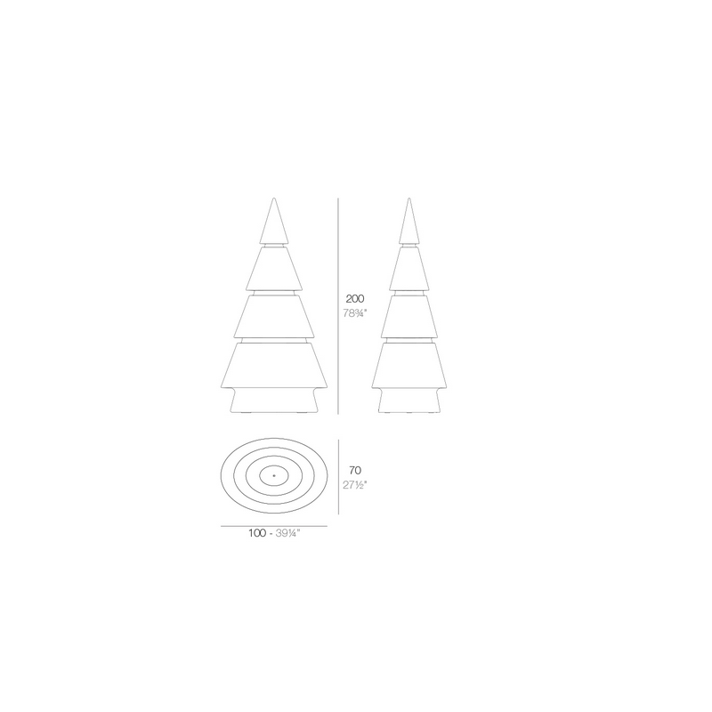 Der Designer Ramón Esteve entwarf den Waldlichterbaum für die Marke Vondom. Durch seine reinen und geometrischen Linien ist der Waldbaum eine zeitgemäße Neufassung des Weihnachtsbaums. Die Nüchternheit und Eleganz seines Designs schaffen eine zeitlose Harmonie, unabhängig vom Stil Ihrer Umgebung. Ausgestattet mit einem RGBW-LED-Beleuchtungssystem (Variation der Lichtfarbe dank der mitgelieferten Fernbedienung) erzeugt der Waldbaum ein weiches und umhüllendes Umgebungslicht.