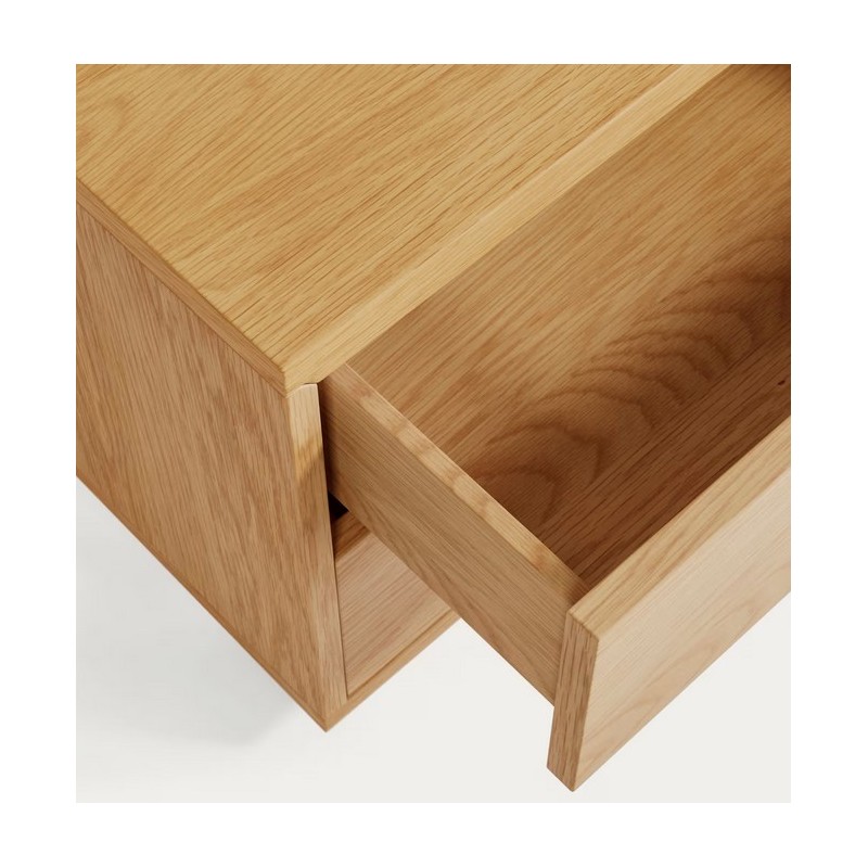 Bali Nachttisch aus Eichenholzfurnier mit modernem Finish und 2 Schubladen.