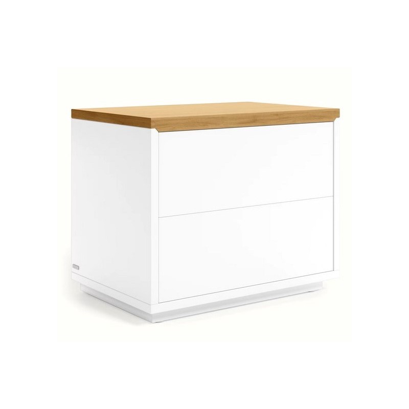 Der Nachttisch Bali ist die perfekte Kombination in Eichenfurnier und Struktur in weiß lackiert.