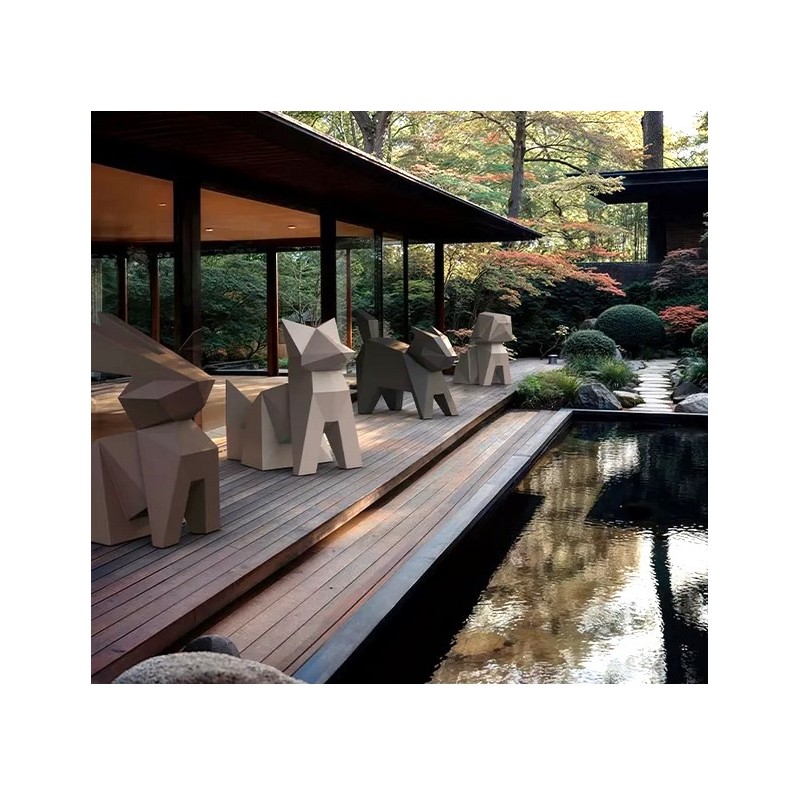 Inspiriert von der Einfachheit und Raffinesse derOrigamibringt diese Kollektion die Essenz der vereinfachten Geometrie durch eine exquisite Auswahl an facettierten Tieren und Vasen in den Außenbereich.
