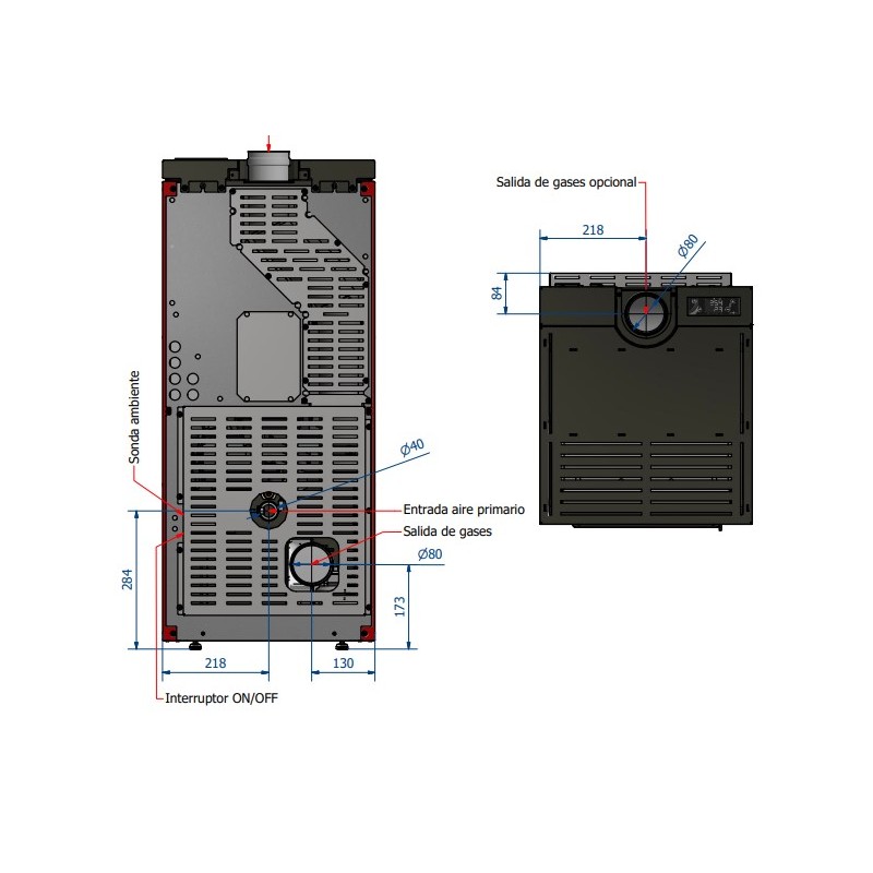 Ø80 mm Rauchgasanschluss hinten oder oben
