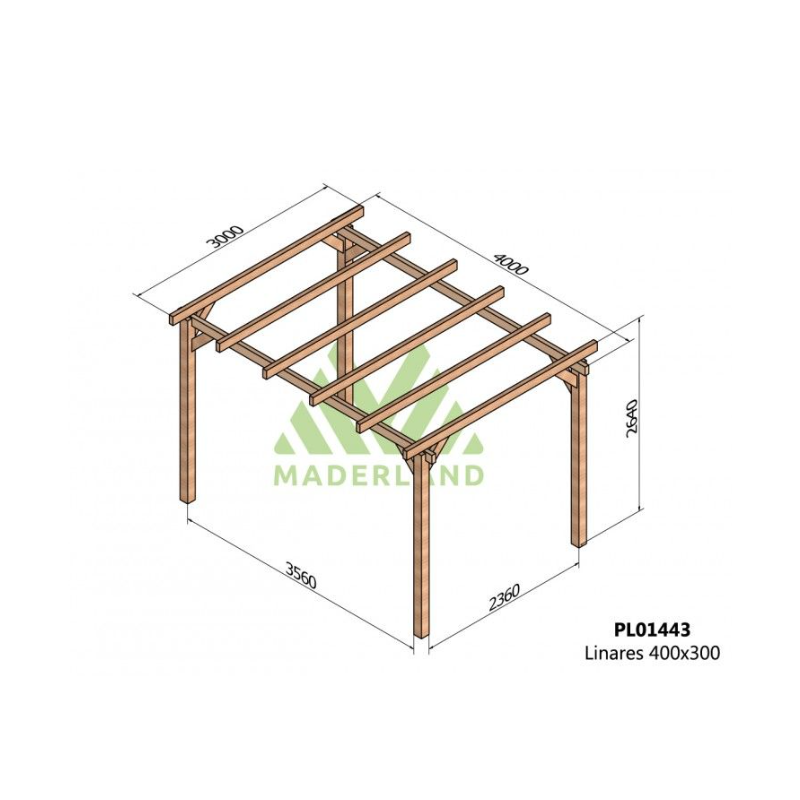 Freistehende Pergola aus Holz Linares 400x300cm 12m2.