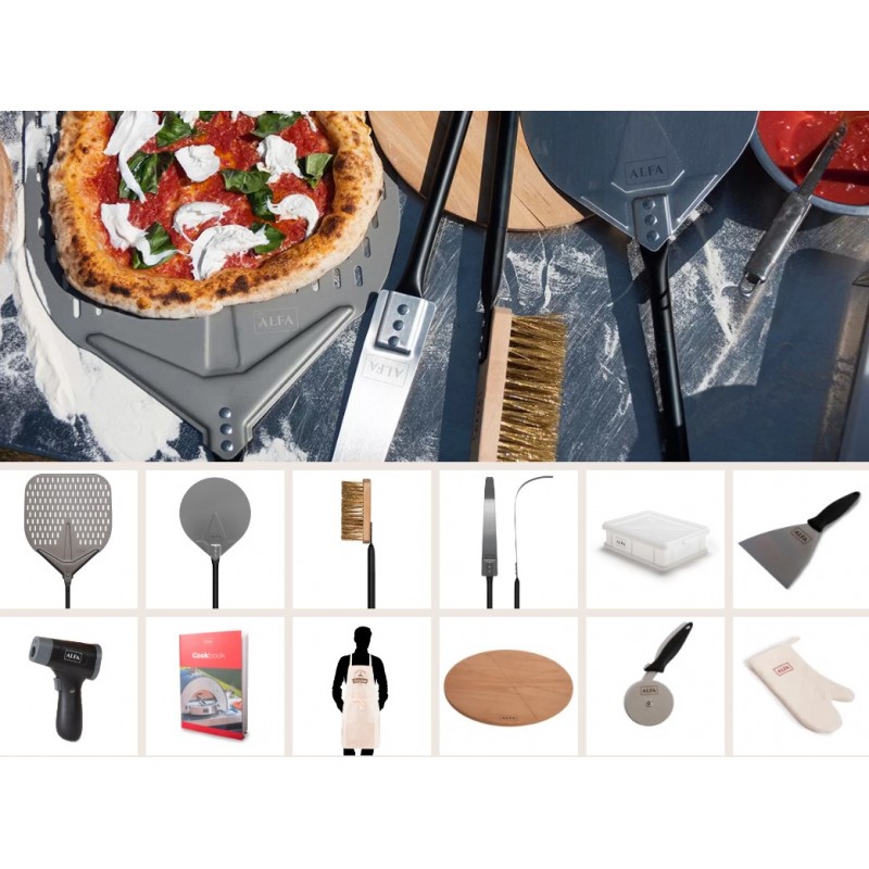 Das komplette Pizzaiolo-Kit von ALFA PIZZA, um beruhigt zu kochen, Modell Modern Pizza.