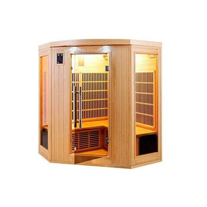 Apollon Quartz Indoor-Infrarot-Saunakabine, für 3 bis 4 Personen ausgelegt.