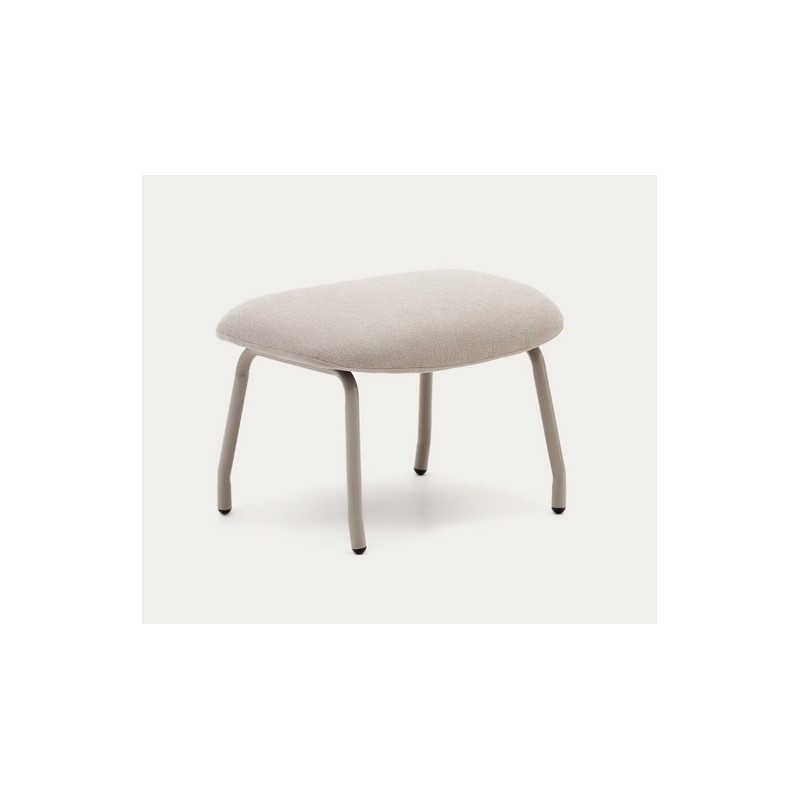Die Fußstütze für den Sessel Lina aus beigem Chenille-Stoff und Stahlfuß schwarz.
