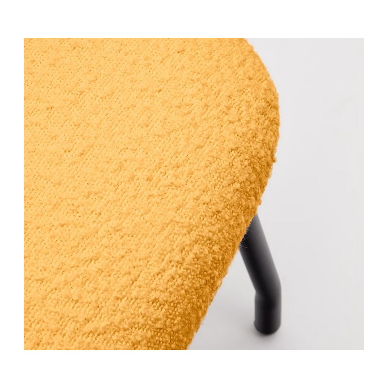 Die Fußstütze für den Sessel Lina in Stoff senfgelbe Locke und Stahlfuß schwarz.