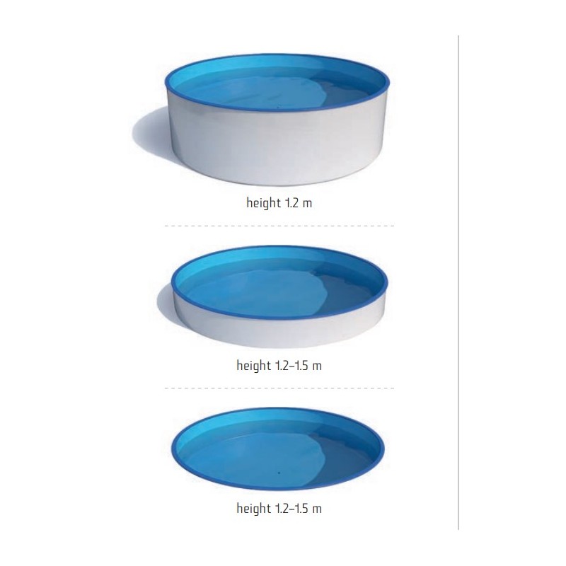 Die Wände des Pools Rund Ibiza Azuro 5m H120 bestehen aus dicken Stahlelementen, die mit einer Zinkschicht beschichtet sind. Darüber hinaus sind die Wände durch eine Schicht aus korrosionsbeständigem Kunststoff geschützt und garantieren somit die langfristige Lebensdauer des Pools. Der Liner ist von höchster Qualität und sorgt für die Dichtheit des Beckens und ist beständig gegen UV-Strahlen.