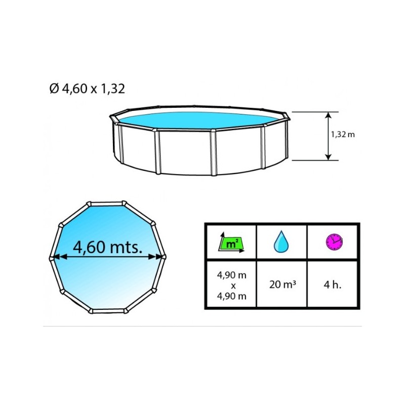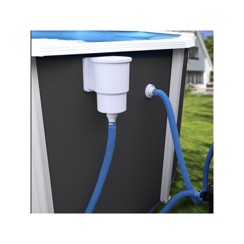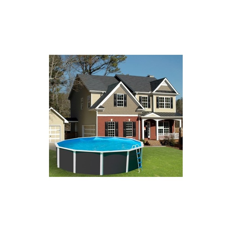 Oberirdischer Pool TOI rund Magnum Anthrazit 460x132 mit seiner kompletten Ausrüstung bereit zum Schwimmen.