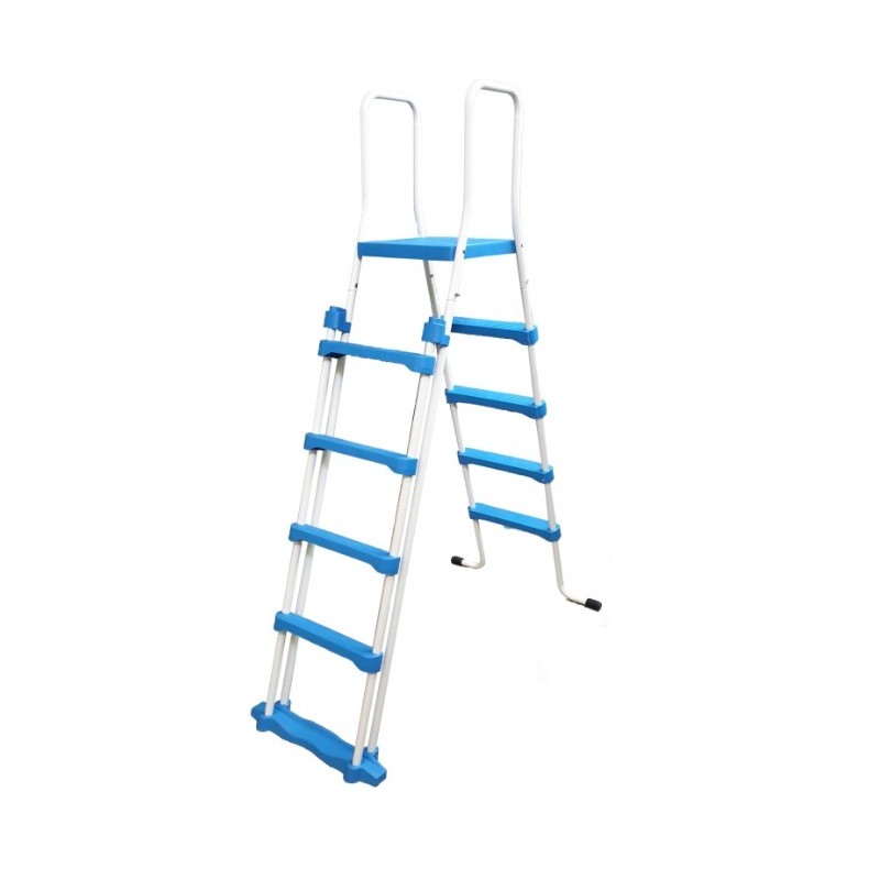 - Sicherheitsskala. Skalieren Sie 8 Stufen mit Plattform. Stufen, die außerhalb des Pools verbleiben, können entfernt oder über den Haken platziert werden, um zu verhindern, dass Kinder den Pool betreten. Die Höhe der Leiter beträgt 1,85 m.