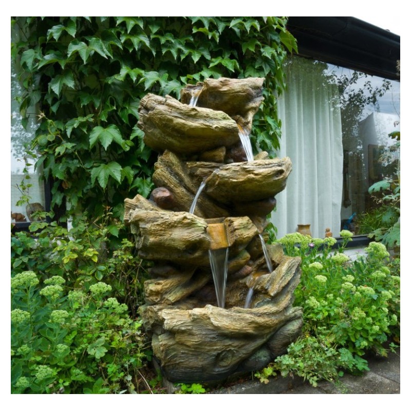 Der Sedonas Ubbink Brunnen, ein majestätischer Wasserfall, der die natürliche Form alter Baumstämme imitiert. Die Wasserfälle bilden sich auf Höhe der Becken und werden von LEDs beleuchtet. Komplett mit Pumpe für den Garten einsatzbereit