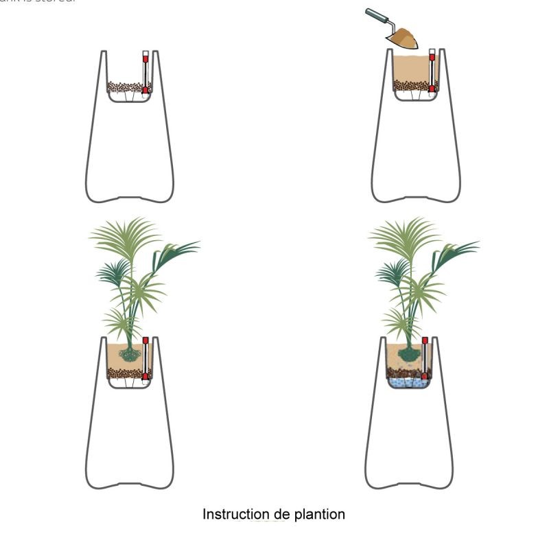 - in 5 Versionen: doppelt einwandig, doppelwandig mit Selbstbewässerungssystem (Autonomie bis zu 3 Monaten), glänzend lackiert, hell (Kompaktleuchtstofflampen), LED (7 Farben der Beleuchtung, die über eine mitgelieferte Fernbedienung gesteuert werden).