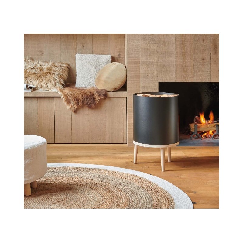 Skandinavisch und natürlich, kombiniert dieser EÏKO Holz-Organizer zwei Materialien: robusten Stahl für den zylindrischen Behälter, in dem die Stämme aufbewahrt werden, und Buche, helles Holz, für den eleganten Boden. Dieser Holz-Organizer, der dank des Holzstativs angehoben werden kann, bietet einen unmittelbaren Nutzen für den täglichen Benutzer, der sich nicht mehr bücken muss, um sein Holz aufzuheben.