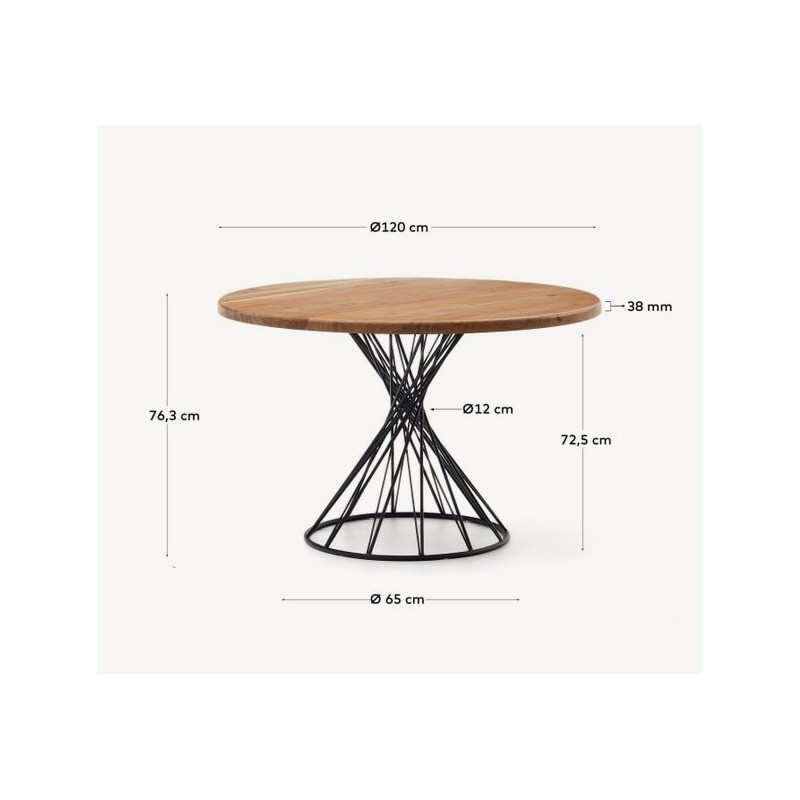 Inu Runder Tisch aus Akazienholz und Stahlstruktur, fügen Sie dank der besten Materialien und Oberflächen Design hinzu.