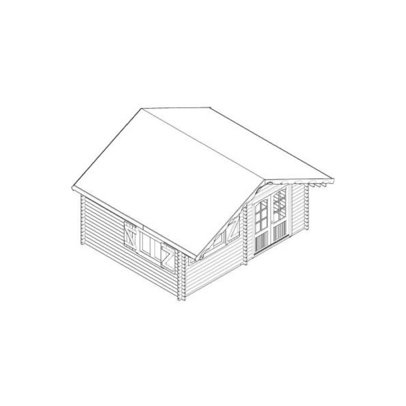 Shelter doppelt geneigtes Dach aus Massivholz 24,96m² Dielen 42mm Habrita.