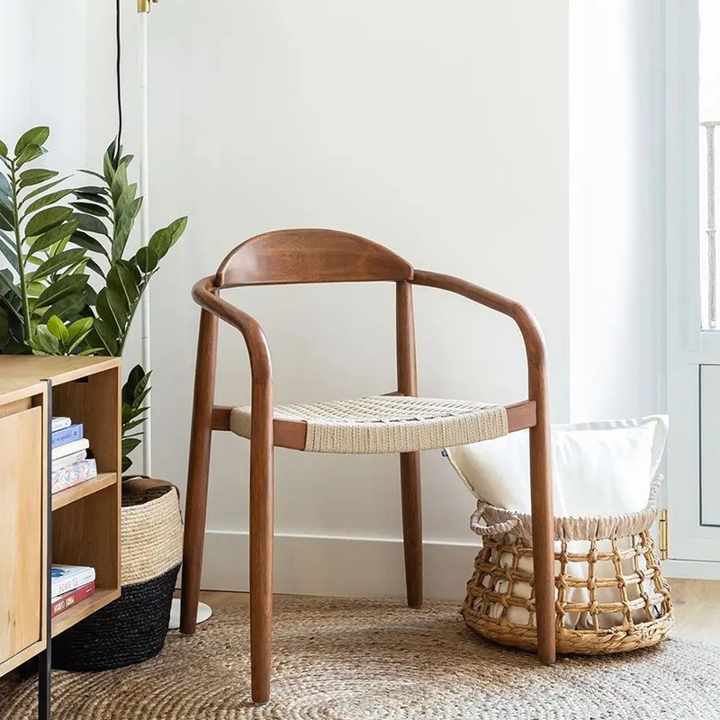 Let yourself be seduced by the KosyForm chair with solid wood structure of walnut finish and seat in beige rope braided by hand.
