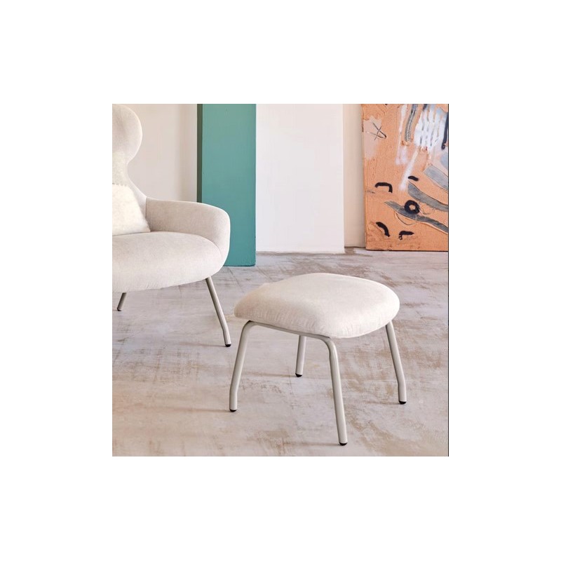 The footrest for the armchair Lina in beige chenille fabric and steel foot black.