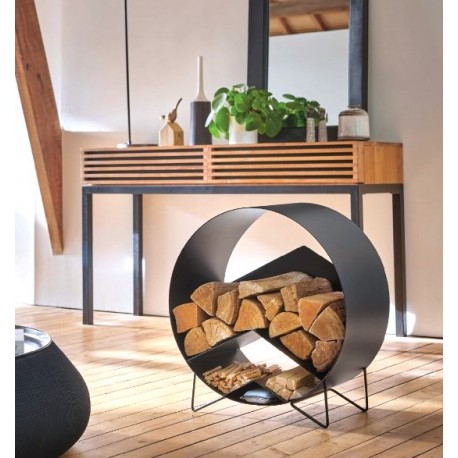 The Tuscan wood storage brings a round and geometric design for this log rack to your interior.
