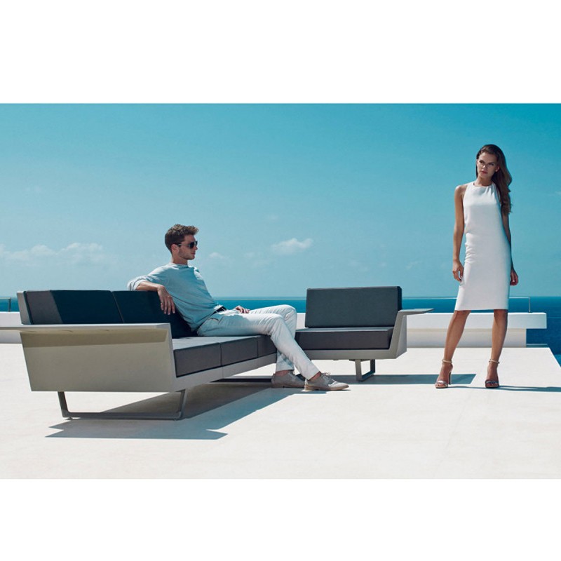 The Flat sofa is part of the amazing FLAT collection. Composed of different rooms that can be used to form outdoor lounges, its products are also suitable for interiors, thanks to their neutral shapes. The Flat sofa allows all types of layout thanks to its angular shape and sleek design. Create an outdoor and indoor lounge that looks like you thanks to the multiple combinations possible with the rest of the Flat range.