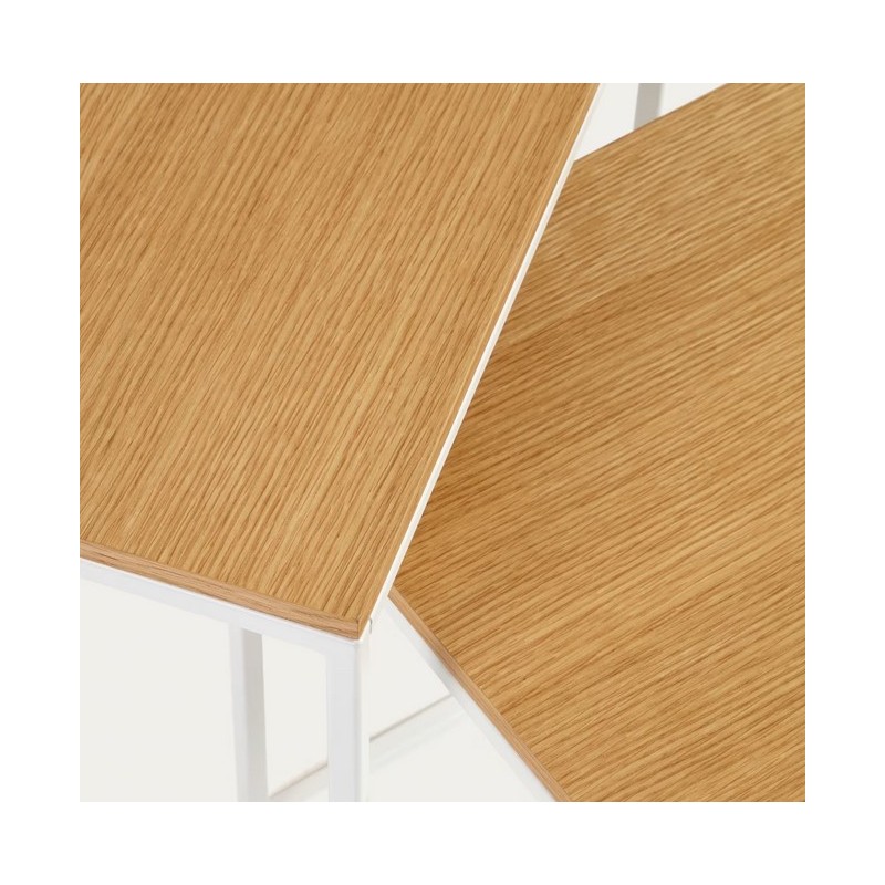 Set of 2 Ana nesting side tables in oak veneer and white metal frame 45 cm.