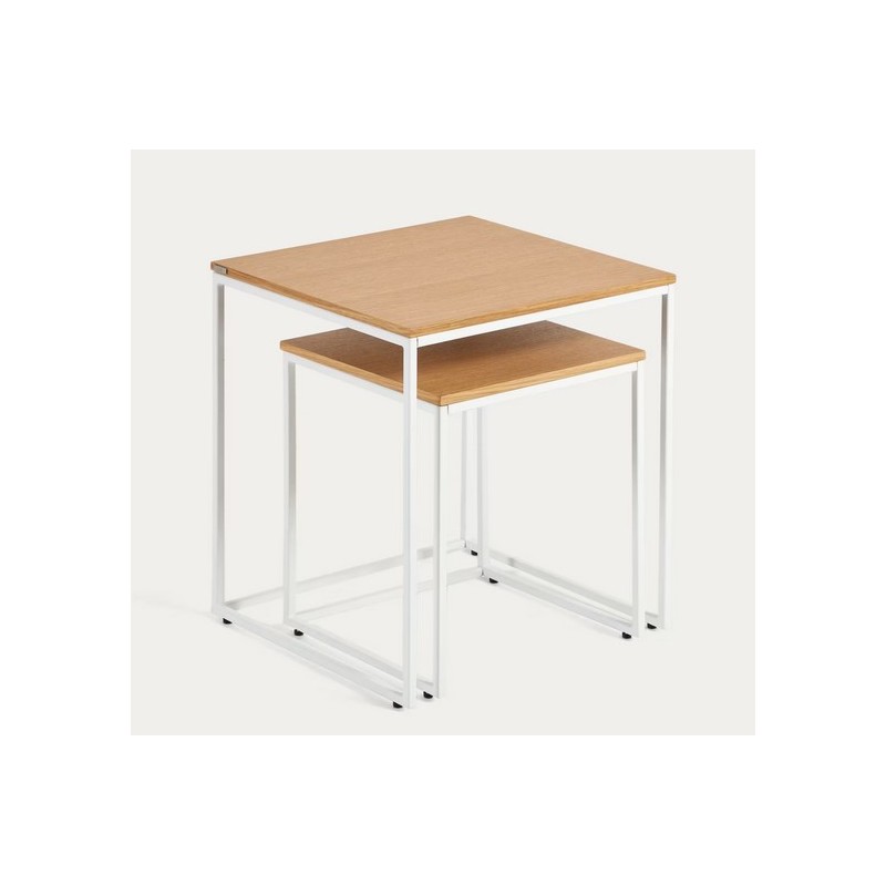 Set of 2 Ana nesting side tables in oak veneer and white metal frame 45 cm. Suitable for indoor use.