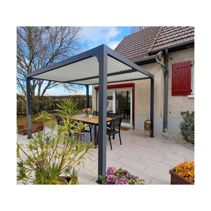 Pergola Bioclimatic aluminium anthracite 10.80 m2 and roof with oval blades Habrita
