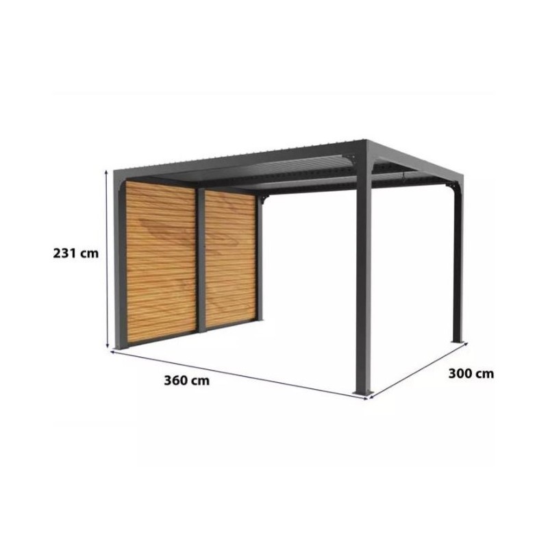 In order to optimize your comfort, the Bioclimatic pergola is equipped with a set of 2 side panels with removable suction cups for one of the sides of 3 m in aluminum imitation wood.