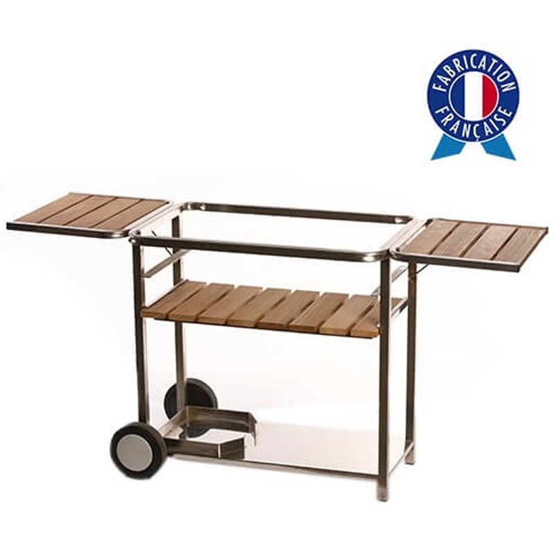 Carro de Plancha gas 3 trío maderas claras y acero inoxidable.
