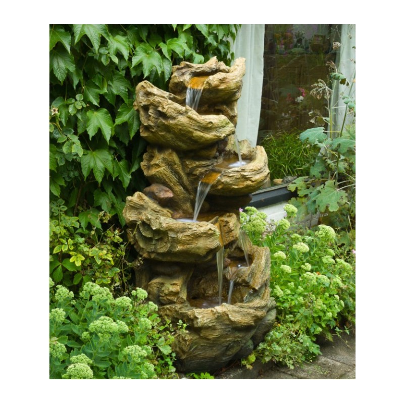 La Fuente de Sedonas Ubbink Majestuosa cascada imitando la forma natural de viejos troncos de árboles. Las cascadas se forman al nivel de las cuencas y están iluminadas por LED.