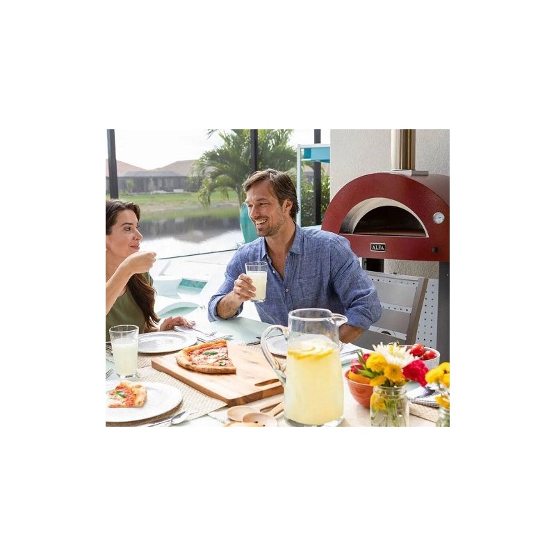 A pesar de su pequeño tamaño, el horno de pizza Alfa Moderno1 Le permite probar diferentes métodos de cocción: en el horno, en la parrilla e incluso en la barbacoa gracias al accesorio opcional BBQ 500 para que tus cenas con amigos sean siempre deliciosas y originales.