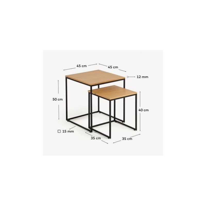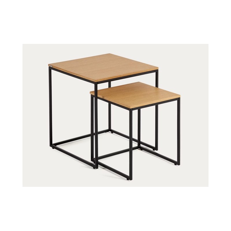 Conjunto de 2 mesas auxiliares nido Ana en chapa de madera de roble y estructura de metal negro de 45 cm.