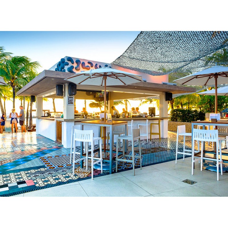 En el lado práctico, los elementos del juego de mesas Spritz y dos taburetes son muy resistentes, ligeros y fáciles de mantener. Muy prácticos, los taburetes también son apilables, para una perfecta optimización de tus espacios.