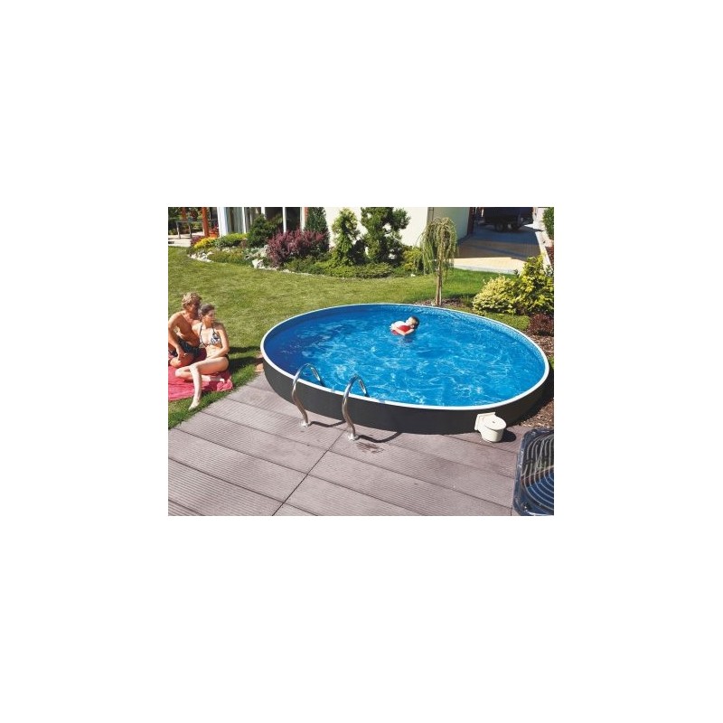 Esta piscina está equipada con una estructura de acero reforzado y anticorrosión tratada con un espesor de 40/100 y barras verticales que garantizan una mayor resistencia que las piscinas estándar sobre el suelo.