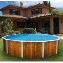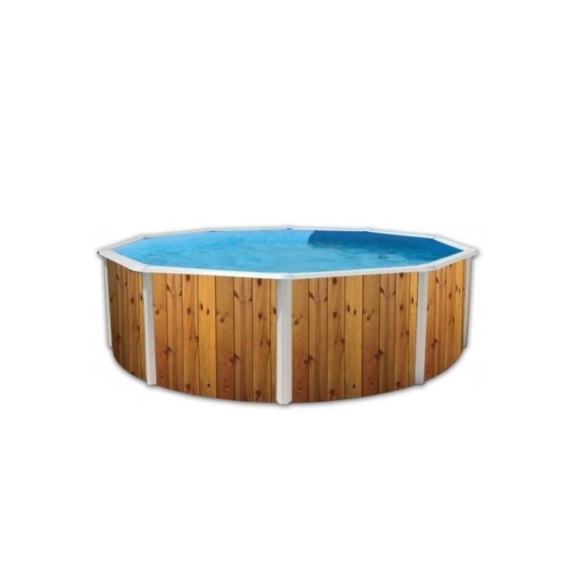 Piscina elevada TOI redonda Veta decoración de madera 350xH120 con su completo kit listo para nadar.