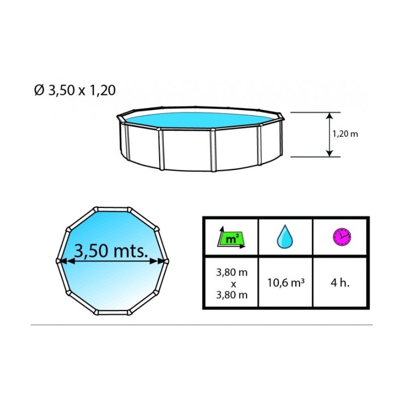 Características de la piscina 350xH120 cm.