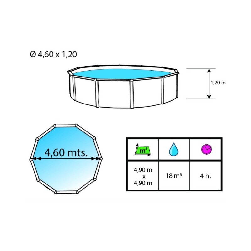 Características de la piscina 460xH120 cm.