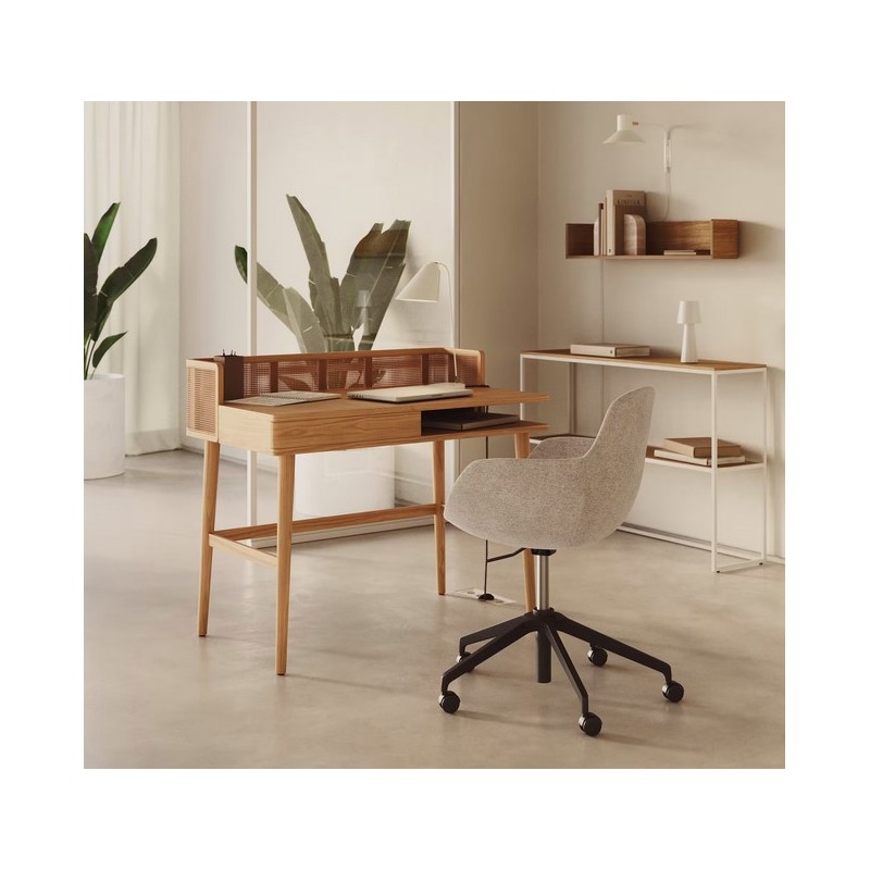 - Silla de oficina cubierto con tapiz de chenilla beige.