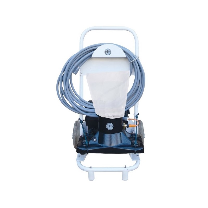 Para piscina grande en superficie de nettovage 1000m2 y 40cm de profundidad mínima. Funciona con batería. Bomba y batería de grado marino. Autonomía de 3 horas para una potencia de succión de 40m³/h. Capacidad de filtración de 6kg.