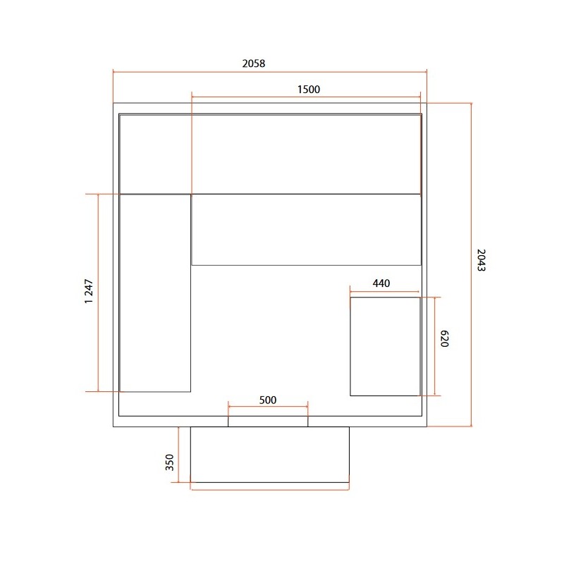 Dimensiones externas: L 205 x D 205 x H 220 cm