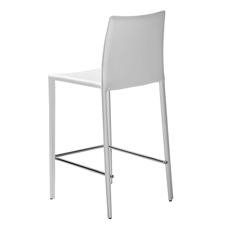 Información adicional: condicionado por 2, Monte A, asiento y respaldo en cuero reciclado, pies de metal cubierto en cuero reciclado, travesaños en acero inoxidable, altura del respaldo: 35 cm, respaldo alto ancho: 37 cm, altura de asiento: 66 cm, frente ancho del asiento: 44 cm, respaldo ancho: 35 cm, profundidad del asiento: 42 cm, travesaños de altura en pies: 23 cm