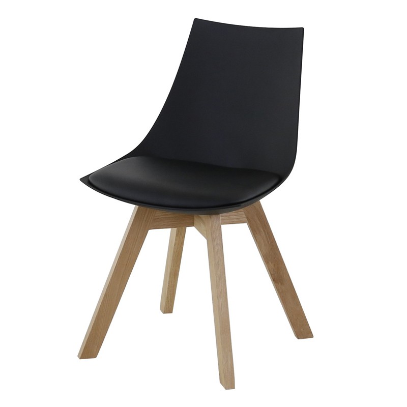 Estas lindas sillas negro y roble KosyForm la base de surf de tendencia escandinava. Nos encanta su piernas cónica natural de roble.