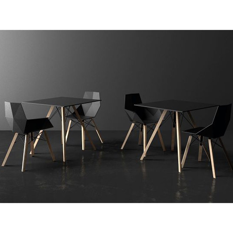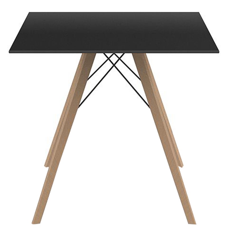 Mesa de comedor Vondom Faz Bandeja de madera 80 cuadrados negro y pies de roble natural.