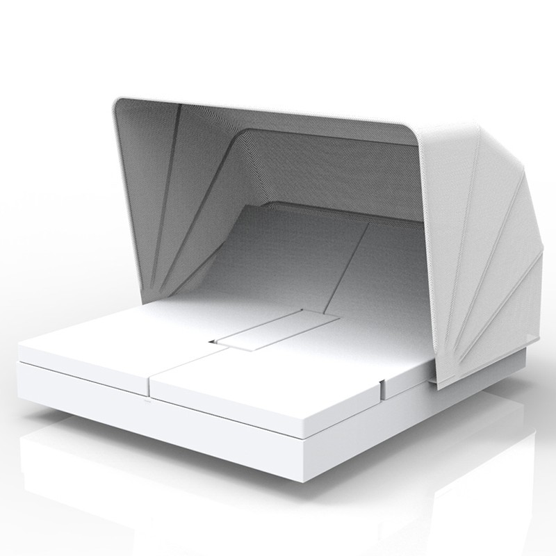Vela Daybed Carré Mat Inclinable 4 chevets avec Parasol par Vondom est un Lit de Jardin Géant Carré avec Parasol Intégré et Articulé.