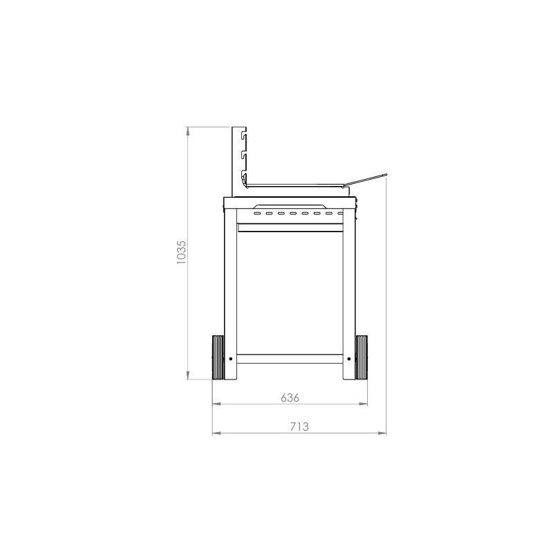 Le barbecue s'encastre aisément dans le chariot - desserte ou un meuble de cuisine d'extérieur.