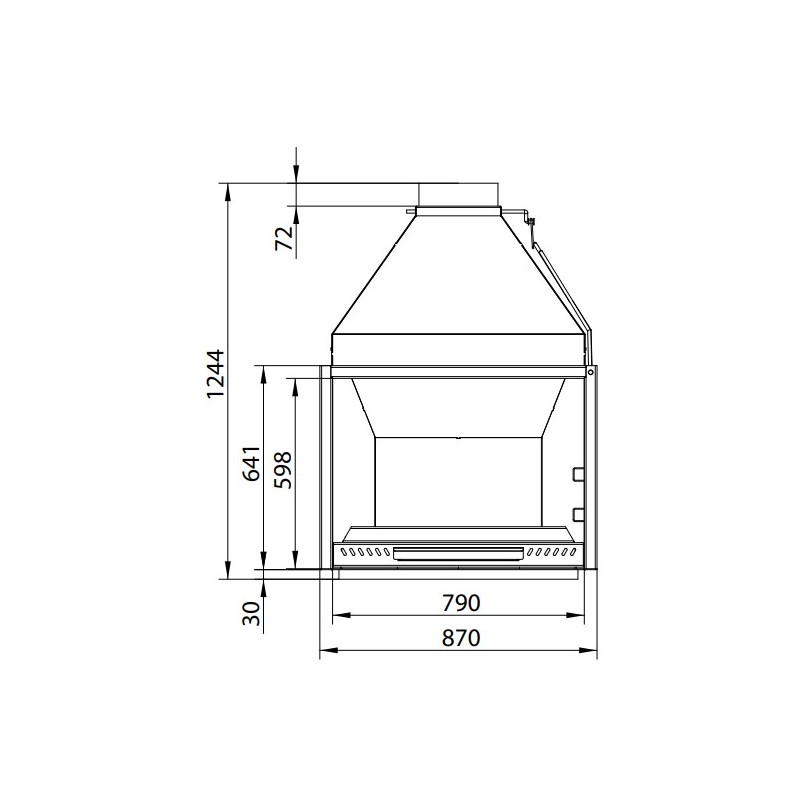 Le réglage de l'air et la finition en peinture anti-calorique est résistante jusqu'à 800ºC (NON ANTI-OXIDANTE), la sortie de fumées par le dessus de 200mm.