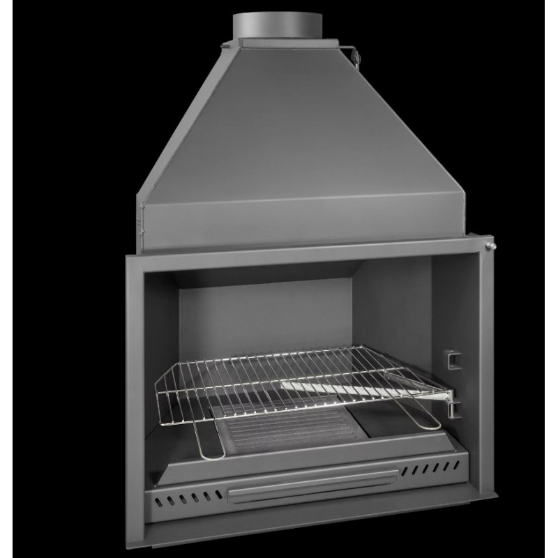 Foyer-Barbecue Ferlux à encastrer de 80cm sans porte, fabriqué en acier au carbon de 4mm, grille en fonte